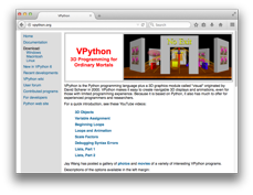 VPython bietet eine hochentwickelte Grafik-Bibliothek, mit der insbesondere die 3D-Grafik zum Kinderspiel wird. Ursprünglich wurde VPython für physikalische Simulationen entwickelt und da liegt auch seine Stärke. Daneben lassen sich aber auch mathematische Graphen zeichnen oder einfache Spiele entwickeln.